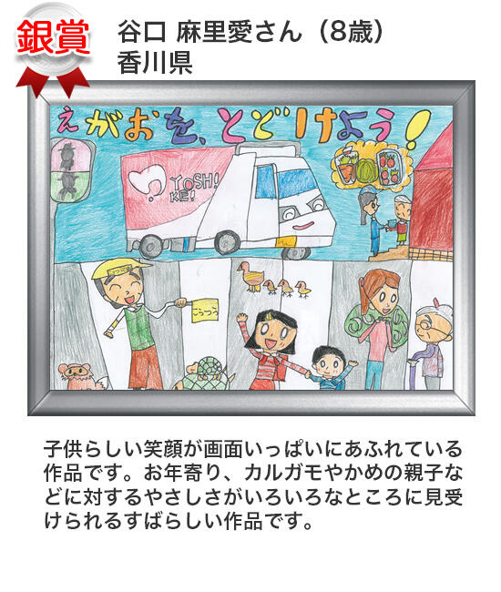 「ヨシケイグループ 交通安全キャンペーン」では、交通事故防止に願いを込めたポスター募集を行っています。今回の募集では、全国より387枚もの応募作品があり、その中から専門家、ならびに当社担当者による審査を経て、60点の入賞作品が決定しました。金賞・銀賞・銅賞および、優秀賞の作品は、ヨシケイのメニューブック『すまいるごはん』4/5号ならびに、ヨシケイホームページにて紹介しています。![]()
