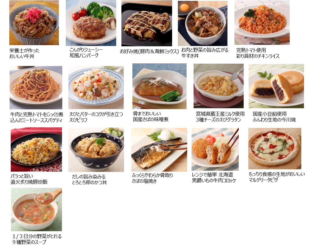 お客様の声を取り入れて開発を行い誕生した、ヨシケイこだわりのオリジナルブランド。お客様モニターによる試食調査や改良を重ね、毎日食べたい、飽きのこないおいしさと利便性を追求した和・洋・中の幅広いラインナップの商品開発を行っています。![]()