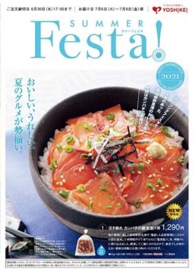 つくる人から笑顔に。をテーマに全国で”食材(ミールキット)宅配サービス”を提供するヨシケイグループ(本部:ヨシケイ開発株式会社/静岡市 代表:井野口 雄一)は、毎週全国で発行しているメニューカタログに加えて、おうちごはんに役立つアイテムを販売。今回はコロナ禍が続き、おうち時間が長い今年の夏に向けて、「ヨシケイ サマーフェスタ2021」企画で子どもから大人まで楽しめる人気の冷凍食品おかずやおつまみ、スイーツなどを2021年7月7日(水)17:00まで、カタログ販売します。