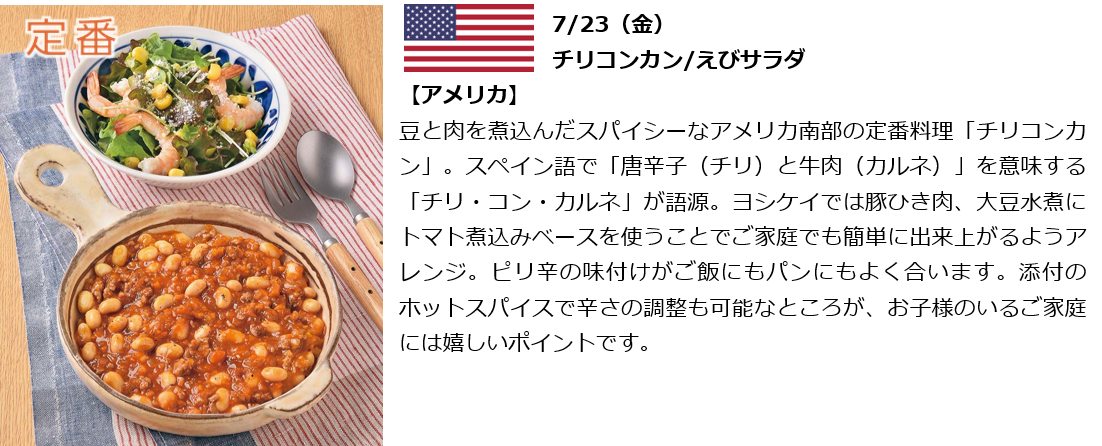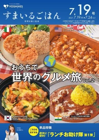 つくる人から笑顔に。をテーマに全国で”食材(ミールキット)宅配サービス”を提供するヨシケイグループ(本部:ヨシケイ開発株式会社/静岡市 代表:井野口 雄一)は、全国で毎週約40万部を発行するメニューブック『すまいるごはん』7/19号で【おうちで世界のグルメ旅vol.2】を特集します。