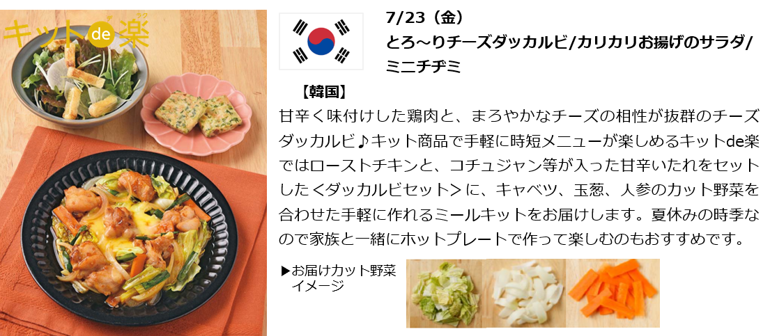1975年創業、食材とレシピのセット(ミールキット)を宅配するフランチャイズチェーン。北海道から沖縄まで全国に65社・294の営業所を配し、50万世帯のお客様へ毎日お届けしています。メニューはすべて専属の栄養士が開発し、栄養バランスはもちろん、食材バランスも考慮し、おいしさや作りやすさにこだわった、定番主菜、時短メニュー、冷凍弁当、ヘルシー食など、豊富なラインナップからお選びいただけます。