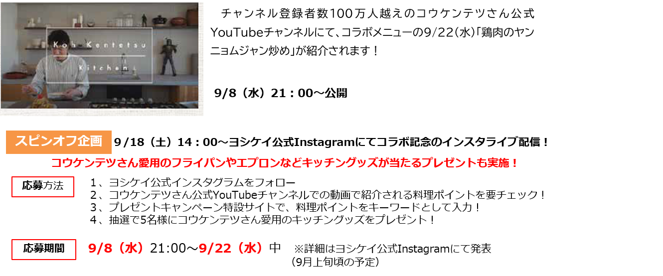 ★9/20号・9/27号にて料理研究家コウケンテツさんとのコラボ企画決定!!