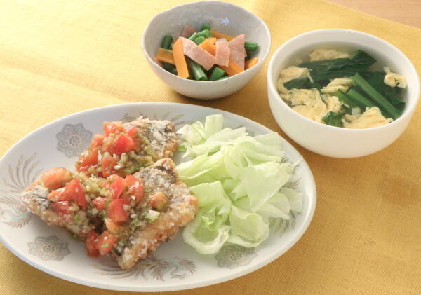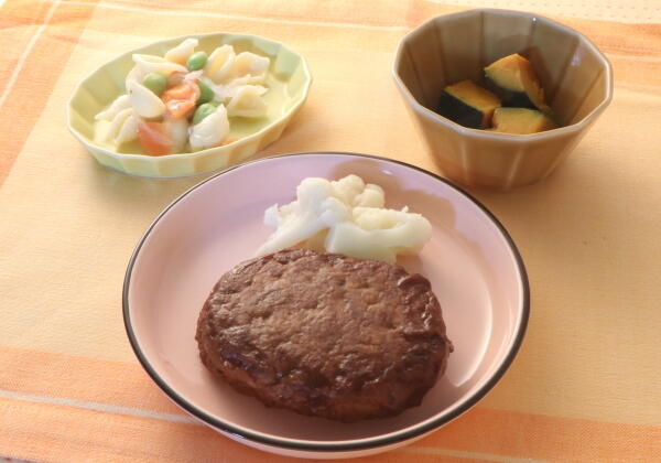 手軽ながらも手作り感を大事にしたい、ご利用者様といっしょにつくりたい施設様におすすめです。レンジや湯煎に新鮮な野菜を取り入れ、手作りの美味しさをプラスしています。主菜・副菜2品の3品構成で調理は湯煎がメインとなっています。